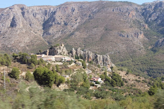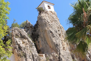 Late morning yesterday, we then headed to Guadalest - about a 45-minute drive east of Alicante on a beautiful, well-maintained roadway system. We wanted to see an example of an Islamic fortefied town. It's located in the oldest part of Guadalest, and you can only get there by foot...through a tunnel...cut into the rock! Then, several flights of cobblestone stairs takes you UP to the ruined castle. Not an easy walk if you have breathing issues like I do, but we took our time, shot lots of photos on the way...and well worth the sweat to get there. Our pictures really don't do justice - the structure itself and then the views from on top are amazing.