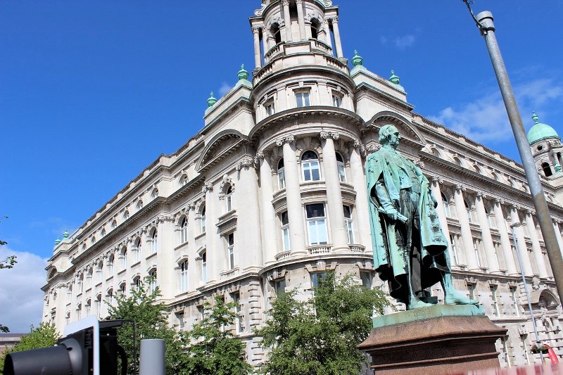 Today, Belfast remains a center for industry, as well as the arts, higher education, business, and law, and is the economic engine of Northern Ireland. We actually enjoyed visiting Belfast more than Glasgow. The city suffered greatly during what they refer to as… “The Troubles” … but in recent years, has undergone a sustained period of calm, free from the intense political violence of former years, and substantial economic and commercial growth. Additionally, Belfast city center has undergone considerable expansion and regeneration in recent years, notably around Victoria Square & City Hall – several active construction sites today. In many cases and to our surprise, when renovating an ‘old’ building, they leave and preserve as much of the timeworn front architecture as possible, and build the new behind it!